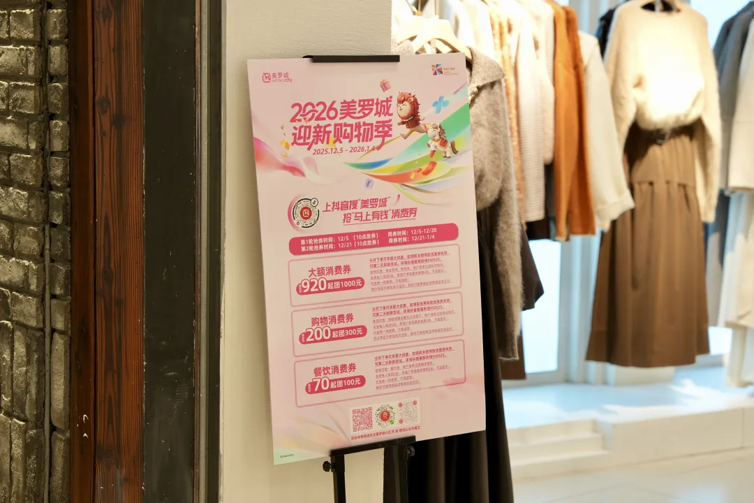 作为徐家汇商圈的热门地标,美罗城以“迎新购物季”为主题启动两轮消费券发放,成为“双十二”期间的消费热点。活动期间,商场推出了核心品类的团购券:70元团100元餐饮券、200元团300元购物券,以及920元团1000元数码黄金券,精准覆盖不同客群的多元需求。